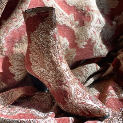 Colette offers a special collection of tapestry fabrics and embroidered velvets, each limited to 2-3 boot orders. Please call or text Colette at 925-871-9116 to see the what treasures are currently available.